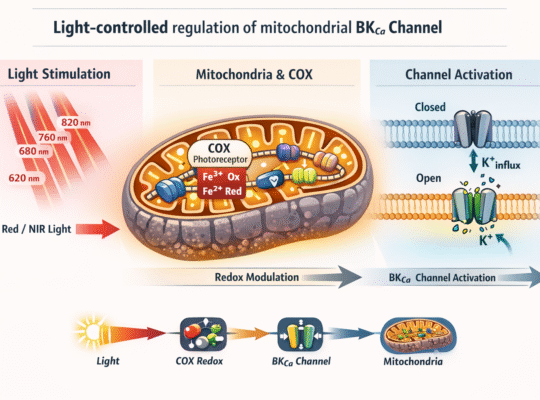 In this study, we show that red and near-infrared light (620–820 nm) directly modulates theactivity of the mitochondrial BKCa potassium channel in glioblastoma cells. Using patch-clamp recordings, we demonstrate that light-dependent effects are linked to the redox stateof the respiratory chain, most likely mediated by cytochrome c oxidase (COX).Our results reveal a new mechanism connecting: …